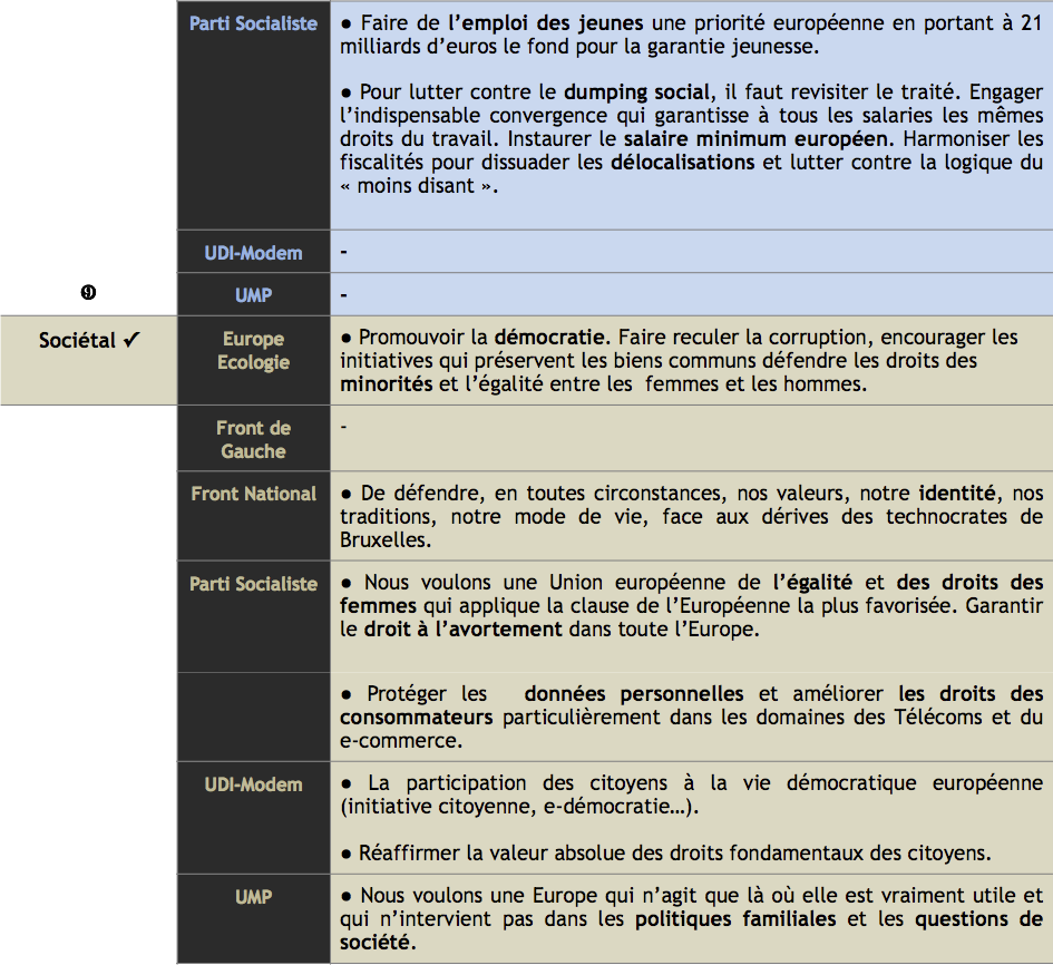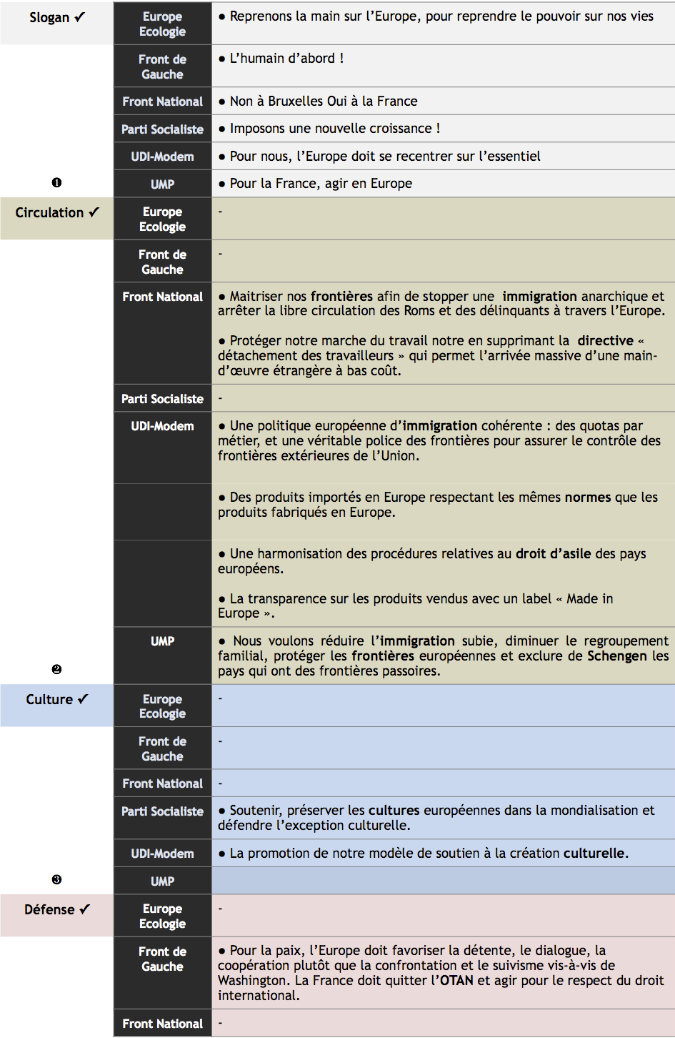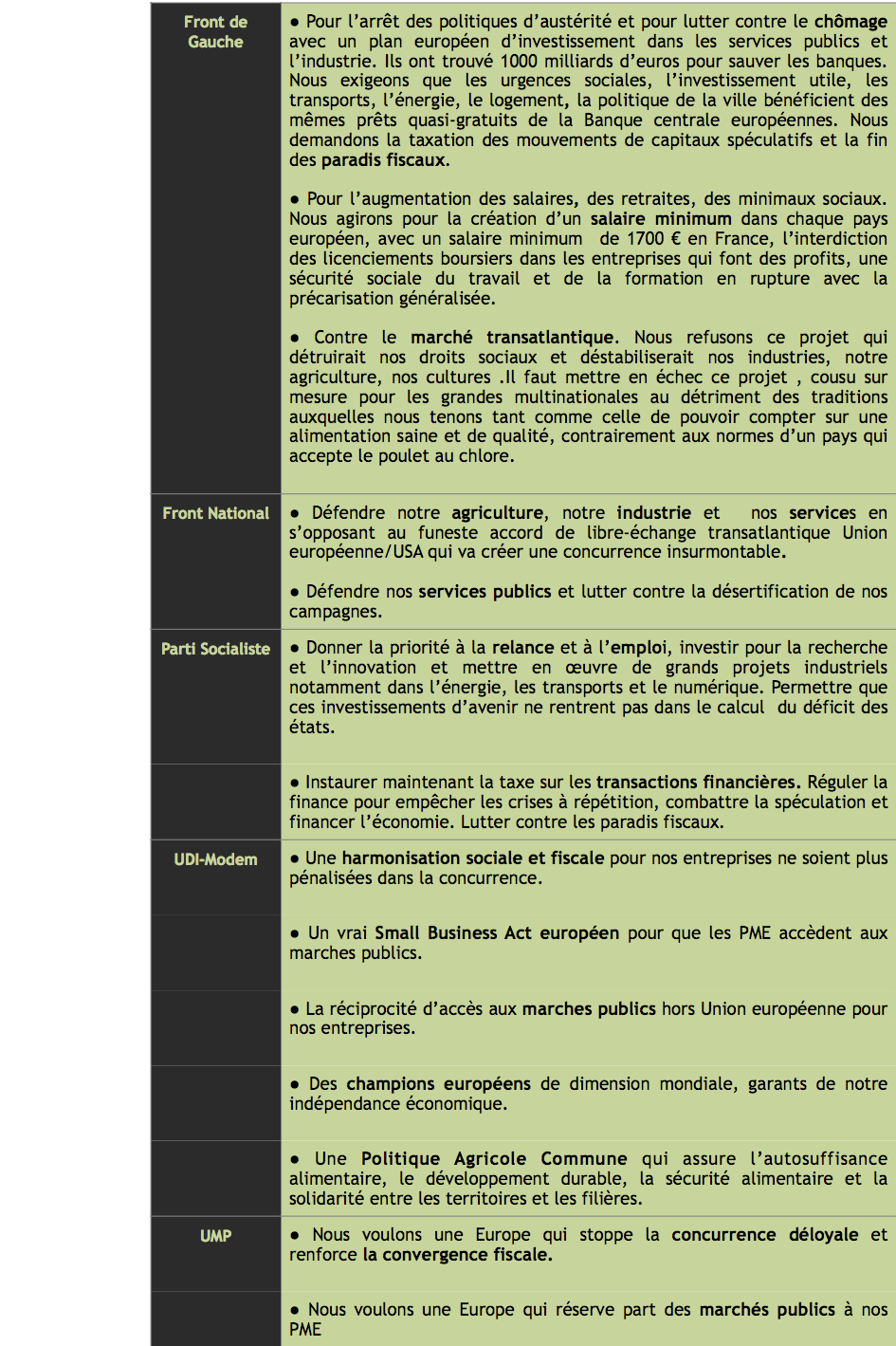 [Sur la base des professions de foi électorales envoyées aux électeurs]